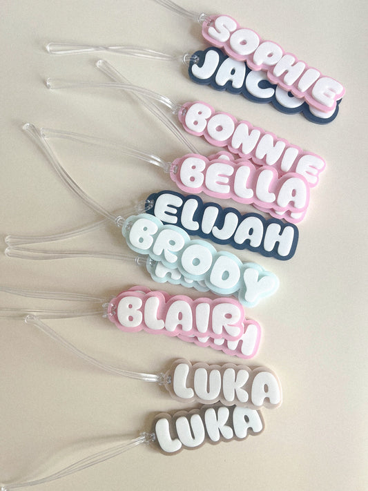 Bubble Text Bag Tags