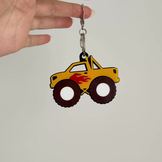 Choose your favourite colour combo by selecting the monster truck colour, flame colour, and backing colour to make it completely your own.